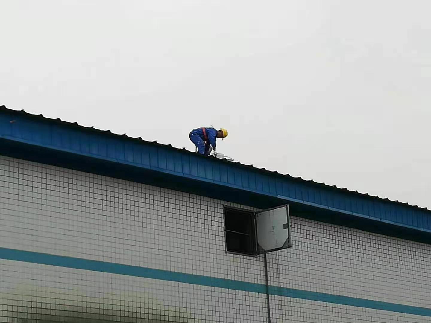 彩鋼瓦屋面防水湖南城工防水有限公司的工作員工在進行彩鋼瓦屋頂局部防水彩鋼瓦